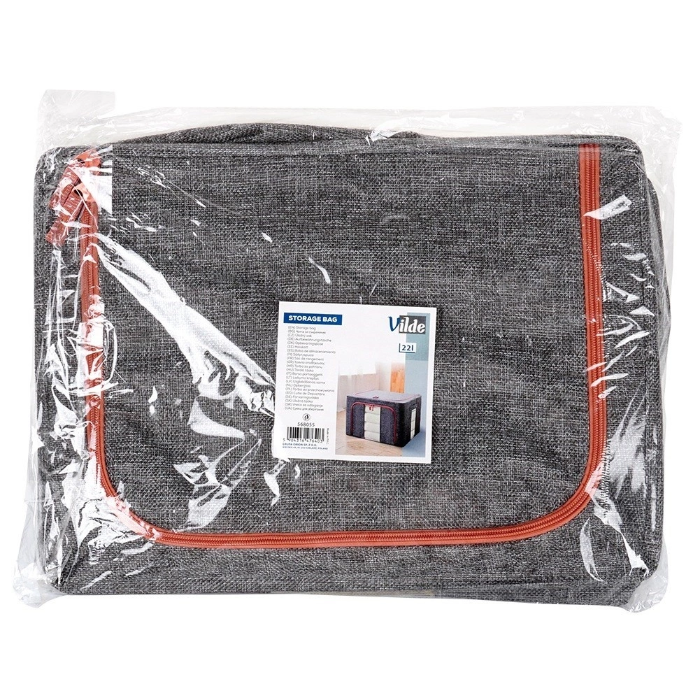 Przydatny pokrowiec na pościel. Wykonany z wytrzymałych materiałów. Sprawdzi się do przechowywania koców, poduszek, ale również ubrań i innych tekstyliów. Pokrowiec jest zamykany, więc ochroni przechowywane rzeczy przed zawilgoceniem oraz molami. Z jego pomocą możemy odpowiednio wygospodarować przestrzeń w szafie lub pod łóżkiem. Oryginalny produkt marki Vilde. Wyprodukowano zgodnie z europejskimi standardami.