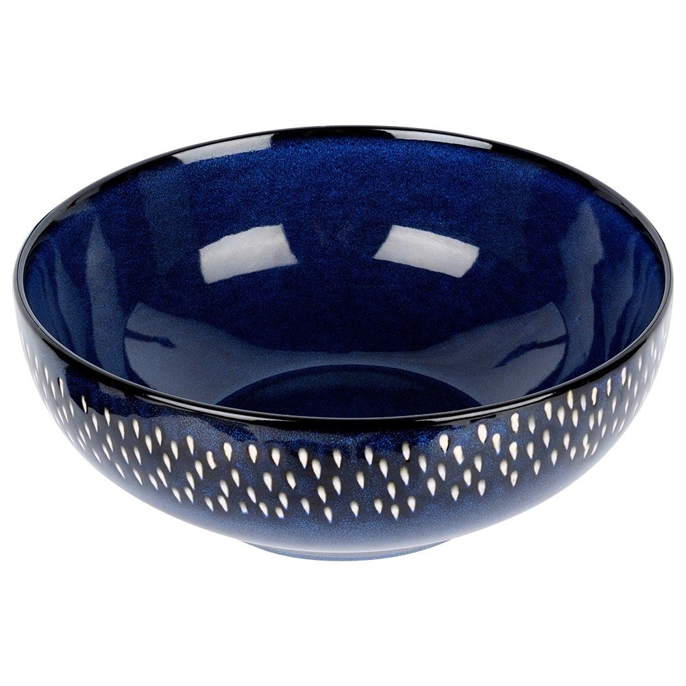 - Duża miska o pojemności 2,8 l i uniwersalnym zastosowaniu. Wykonana z ceramiki gresowej w granatowym kolorze. Idealna do serwowania sałatek i przekąsek.