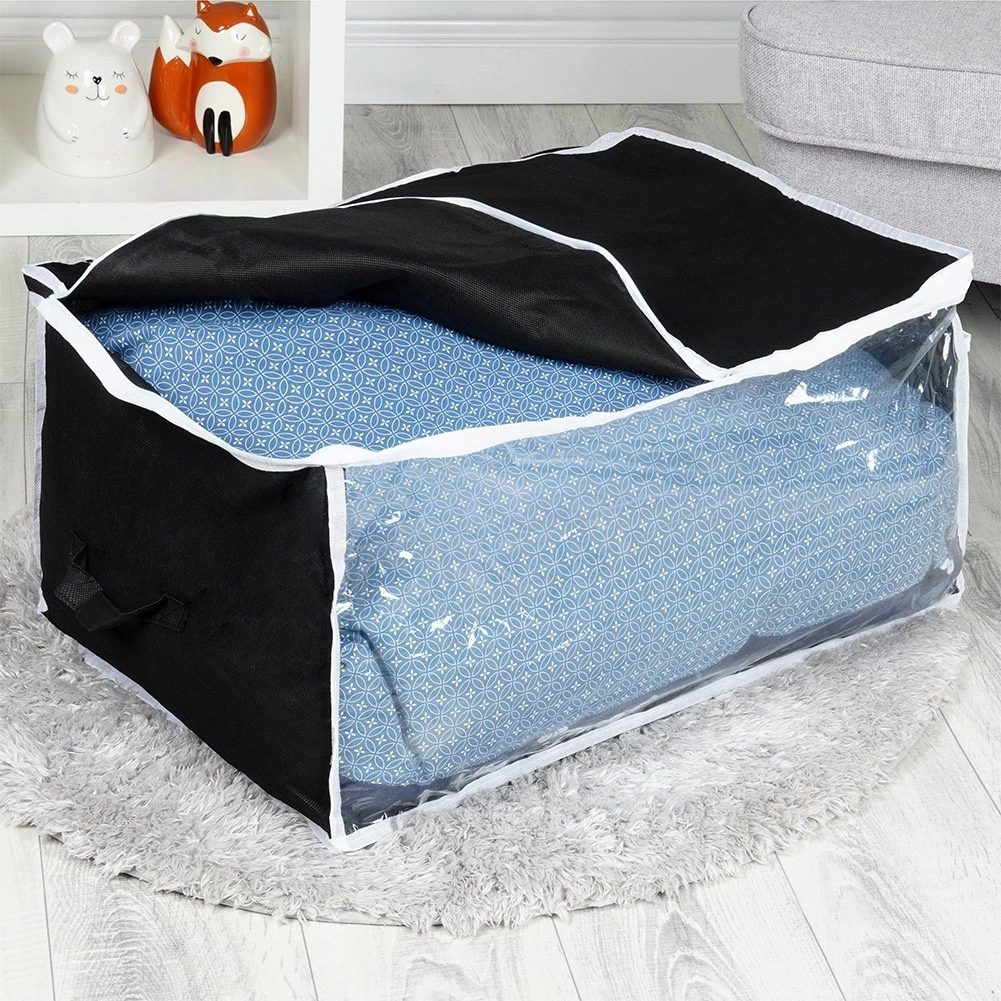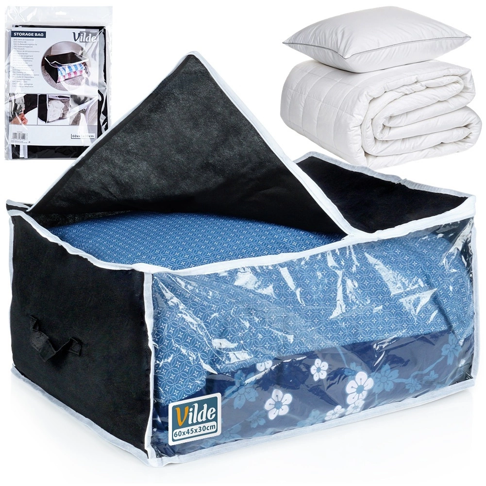 - Praktyczny pokrowiec na pościel, koce, poduszki oraz ubrania. Chroni pościel przed zawilgoceniem, kurzem i molami. Zapewni wygodne przechowywanie rzeczy w szafie lub pod łóżkiem.