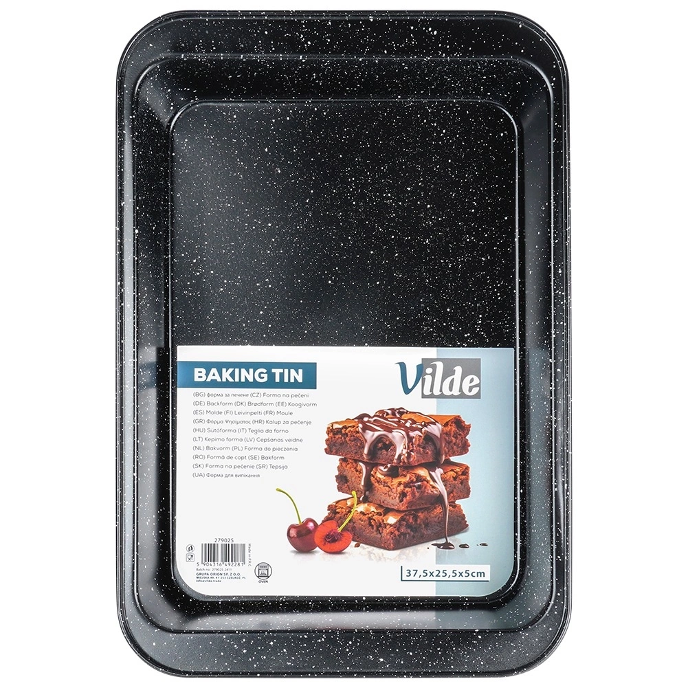 Blacha do pieczenia z powłoką granitową, znajdzie szerokie zastosowanie w kuchni. Łatwa w czyszczeniu i wygodna w użytkowaniu. Idealna do pieczenia słodkich i słonych potraw. Wykonana z najwyższej jakości materiałów, co zapewni komfort użytkowania. Oryginalny produkt marki Vilde. Wyprodukowano zgodnie z europejskimi standardami.