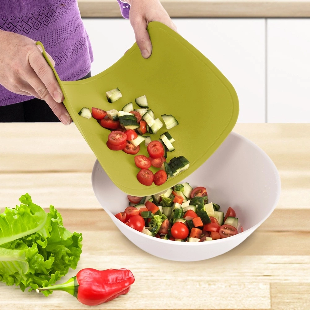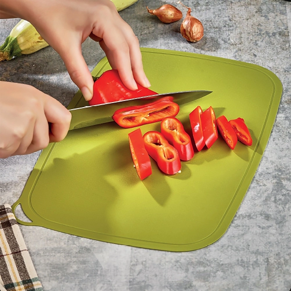- Elastyczna forma podkładki - Cienka, elastyczna forma podkładki ułatwia zsuwanie pokrojonych produktów bezpośrednio do garnka lub miski oraz wygodne przenoszenie pokrojonych produktów.