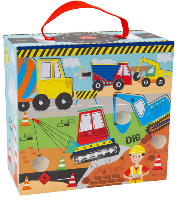 Zapraszamy na wyjątkowy plac budowy, gdzie świetna zabawa czeka na każdego! Ten zestaw składa się z 15 fantastycznych, dwustronnych drewnianych figurek oraz rozkładanej planszy do zabawy, przedstawiającej drogi, wiadukt i plac budowy. W tym kolorowym świecie znajdziesz cztery ciężarówki i koparki, które mogą śmigać na kółkach, mali budowlańcy i wszystko co jest potrzebne na budowie. Ciesz się godzinami zabawy zarówno samodzielnie, jak i w towarzystwie przyjaciół i rodzeństwa. Po zakończonej zabawie włóż drewniane figurki i pozostałe elementy do poręcznego woreczka ze sznurkiem, zamknij pudełko, a następnie skorzystaj z wygodnego uchwytu do przenoszenia, aby zabrać zestaw na kolejną przygodę.