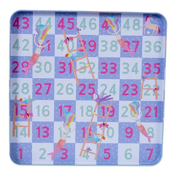 Zestaw czterech popularnych gier i zabaw magnetycznych łączy w sobie rozrywkę dla młodszych i starszych, doskonałą do wspólnej zabawy z rodziną i przyjaciółmi. W zestawie znajduje się gra, w której wspinając się po drabinach, gracze mogą znaleźć jednorożca, albo spotkać syrenkę i spaść na dół. Zawiera również grę opartą na zasadach kółka i krzyżyka. Dla małych miłośników logicznych wyzwań przygotowano planszę do zabawy w wyszukiwanie słów. Ponadto planszę magnetyczną zapewniającą kreatywną zabawę w poznawaniu i odkrywaniu magicznej krainy fantazji oraz jej mieszkańców.