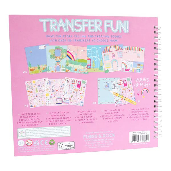 Kreatywny zestaw do kalkomanii to niezwykle twórcza i prosta zabawa dla każdego malucha! W zestawie znajdują się arkusze folii zawierające ponad 150 wspaniałych grafik, 6 arkuszy z kolorowym tłem do ozdobienia, 6 pustych stron do swobodnego rysowania oraz ołówek. Wystarczy przyłożyć folię z kalkomanią do jednego z arkuszy z tłem, zarysować ołówkiem grafikę, a następnie podnieść folię. Odbite na papierze grafiki pozwalają na tworzenie własnych, fantastycznych historii z wróżkami, jednorożcami, niebieską lamą, wesołym liskiem i innymi zwierzakami.