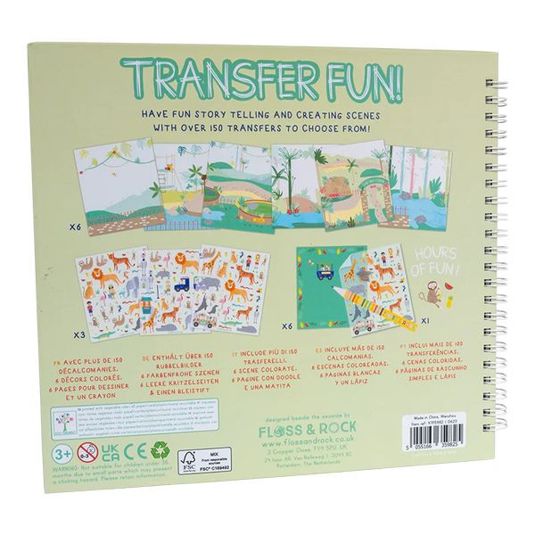Kreatywny zestaw do kalkomanii to niezwykle twórcza i prosta zabawa dla każdego malucha! W zestawie znajdują się arkusze folii zawierające ponad 150 wspaniałych grafik, 6 arkuszy z kolorowym tłem do ozdobienia, 6 pustych stron do swobodnego rysowania oraz ołówek. Wystarczy przyłożyć folię z kalkomanią do jednego z arkuszy z tłem, zarysować ołówkiem grafikę, a następnie podnieść folię. Odbite na papierze grafiki pozwalają na tworzenie własnych, fantastycznych historii z lwami, słoniami, małpami, żyrafami i innymi zwierzakami.