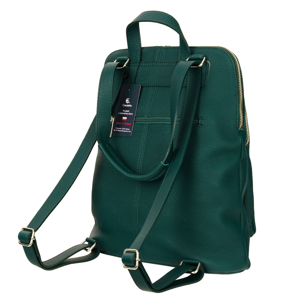 - Torbo-plecak damski Canaletto ze skóry groszkowanej – pojemny, z regulowanymi paskami, kieszeniami na telefon i drobiazgi, złotymi okuciami i wysokiej jakości podszewką. Idealny na co dzień, do pracy i na uczelnię. Wyprodukowany w Polsce!