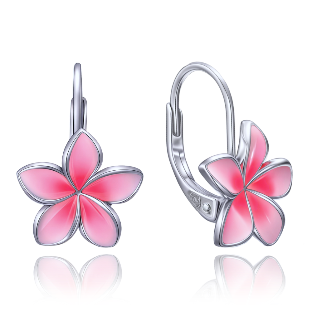 MINET Nowoczesne srebrne kolczyki różowe kwiaty