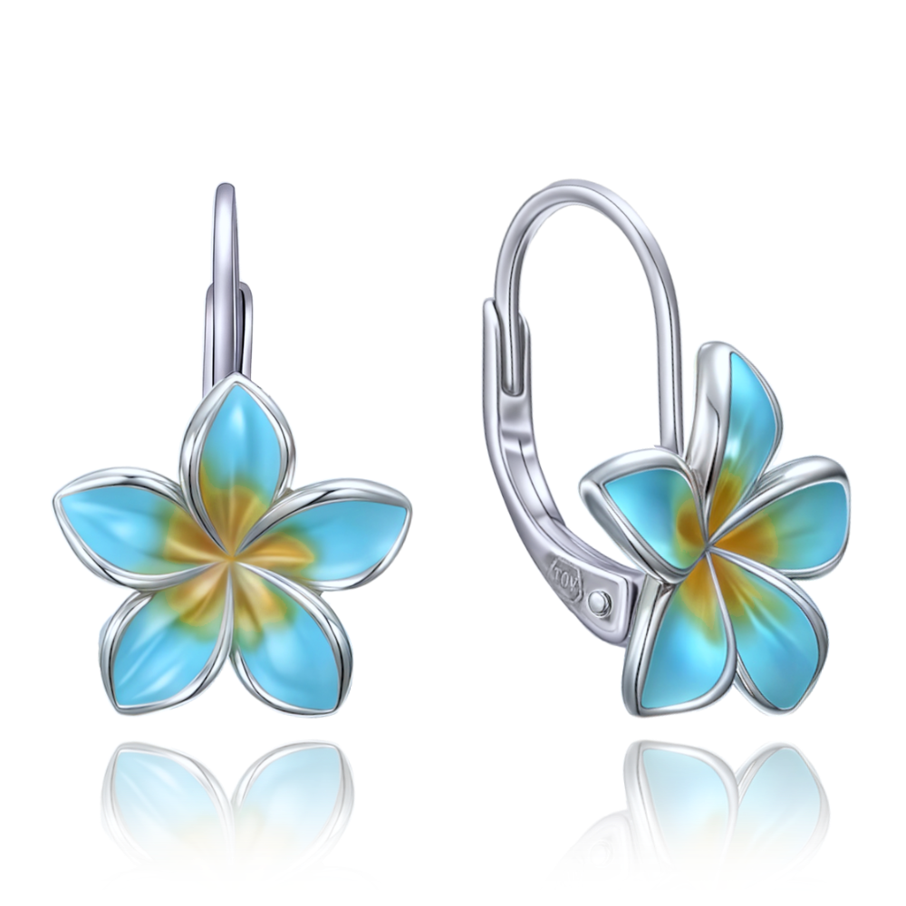 MINET Nowoczesne srebrne kolczyki niebieskie kwiaty