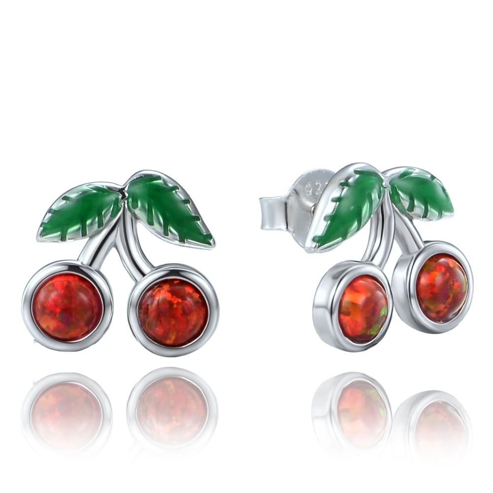 MINET Dziecięce srebrne kolczyki wiśnie z czerwonym opalem i białymi cyrkoniami