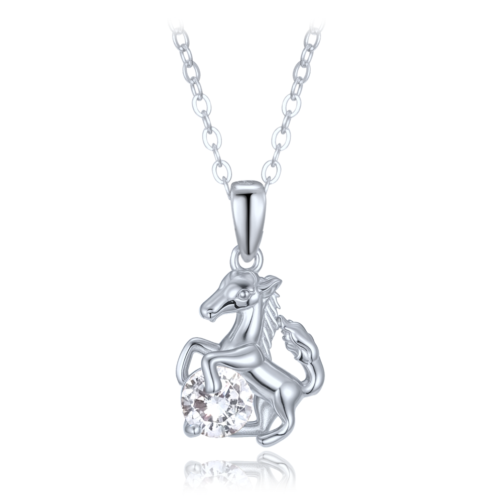 MINET Naszyjnik srebrny koń z białą cyrkonią