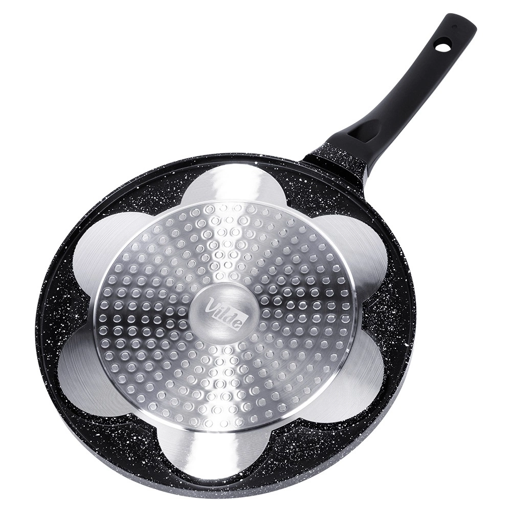 Nieprzywierająca patelnia do jajek o wyjątkowym, ponadczasowym wyglądzie. Patelnia utrzymana w modnym stylu, dzięki czemu efektownie prezentuje się w kuchni. Otwory pozwolą uzyskać okrągły kształt potraw. Z jej pomocą usmażymy pyszne jajka sadzone, ulubione placuszki śniadaniowe czy mini naleśniki. Wykonana z najwyższej jakości materiałów, odpowiednio użytkowana posłuży długie lata. Oryginalny produkt marki Vilde z linii Black Line. Wyprodukowano zgodnie z europejskimi standardami.