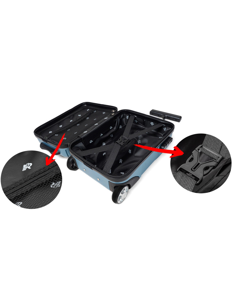 WYMIAR ZEWNĘTRZNY DOTYCZY WALIZKI Z WSZYSTKIMI WYSTAJĄCYMI POZA NIĄ ELEMENTAMI!