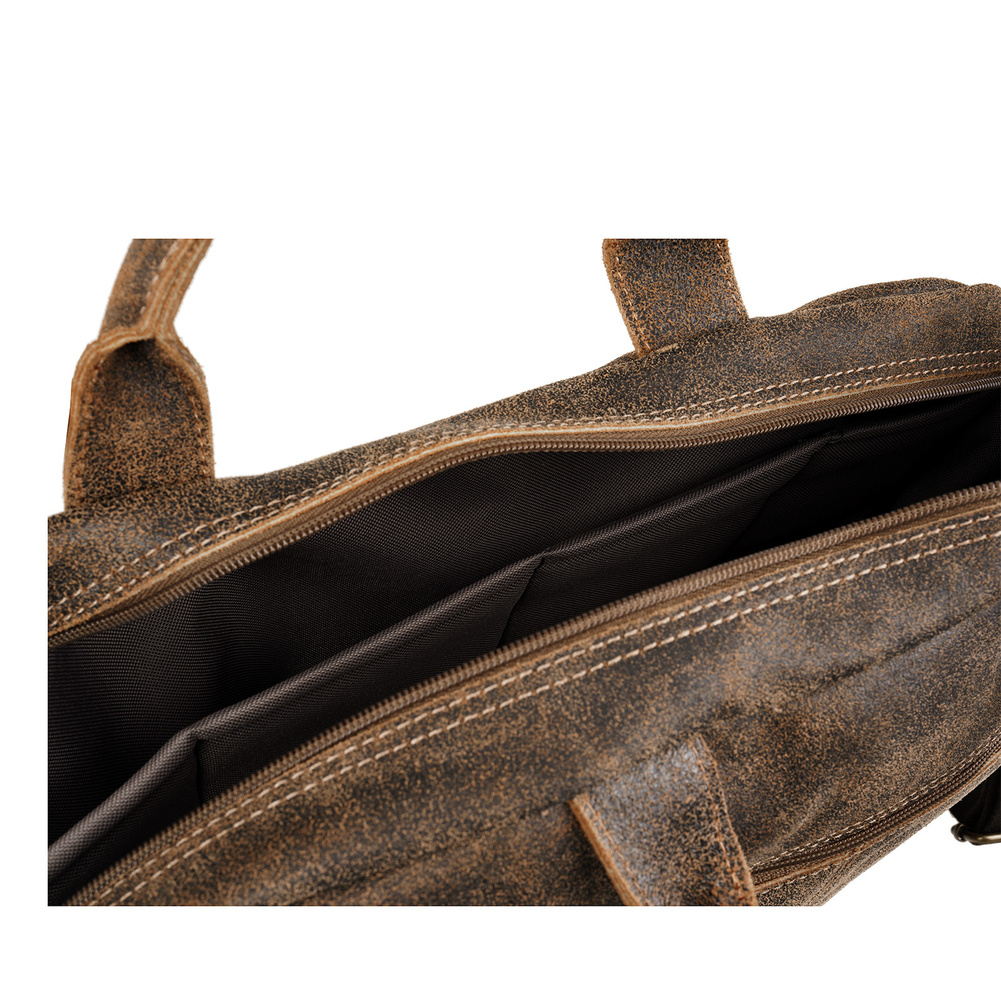 Dzięki swoim wymiarom i praktycznemu wnętrzu torba z łatwością pomieści laptopa do 16 cali, dokumenty w formacie A4 oraz najważniejsze akcesoria. Skórzana konstrukcja wzbogacona jest o solidne rączki oraz dopinany parciany pasek na ramię, który gwarantuje komfort nawet przy dłuższym noszeniu. Pasek jest szeroki, regulowany i wyposażony w wzmocnienia ze skóry na końcówkach, co zwiększa jego trwałość i dopełnia charakter torby.