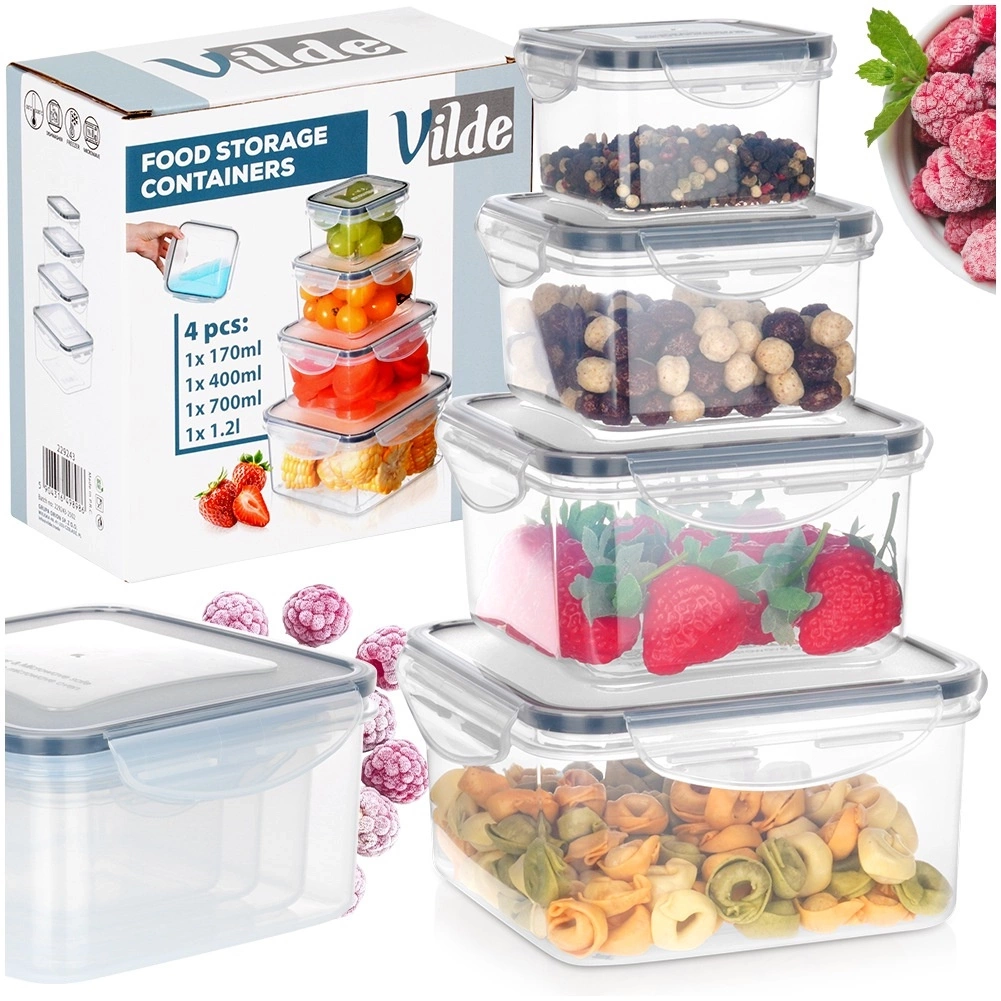 Pojemniki na żywność z pokrywką i uszczelką 4 szt.