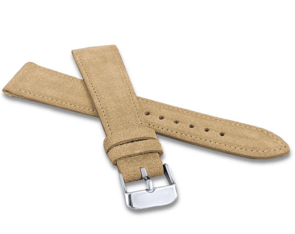 Pasek ten wykonany jest z naturalnej skóry o wykończeniu zamszowym, znanej z aksamitnej miękkości i naturalnego matowego wyglądu. Jest to szczotkowana warstwa skóry – miękka w dotyku, elastyczna i wyjątkowo wygodna w noszeniu. Skóra pochodzi z tradycyjnych europejskich garbarni, które łączą doświadczenie poprzednich pokoleń z nowoczesnymi metodami. W rezultacie powstał lekki, stylowy pasek, który zachowuje swój naturalny charakter i pięknie dopasowuje się do nadgarstka.