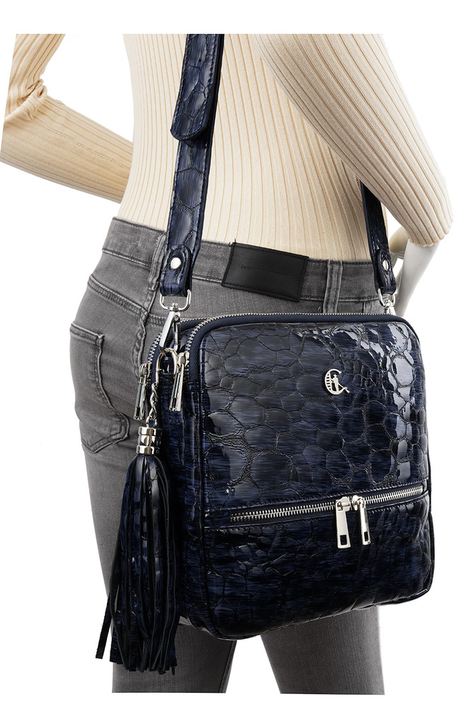 - Stylowa torebka listonoszka Canaletto ze skóry naturalnej. Posiada ozdobny suwak, frędzel, srebrne okucia i regulowany pasek. Trzy komory zapewniają wygodę i funkcjonalność. Ręcznie wykonana w Polsce z dbałością o każdy detal.