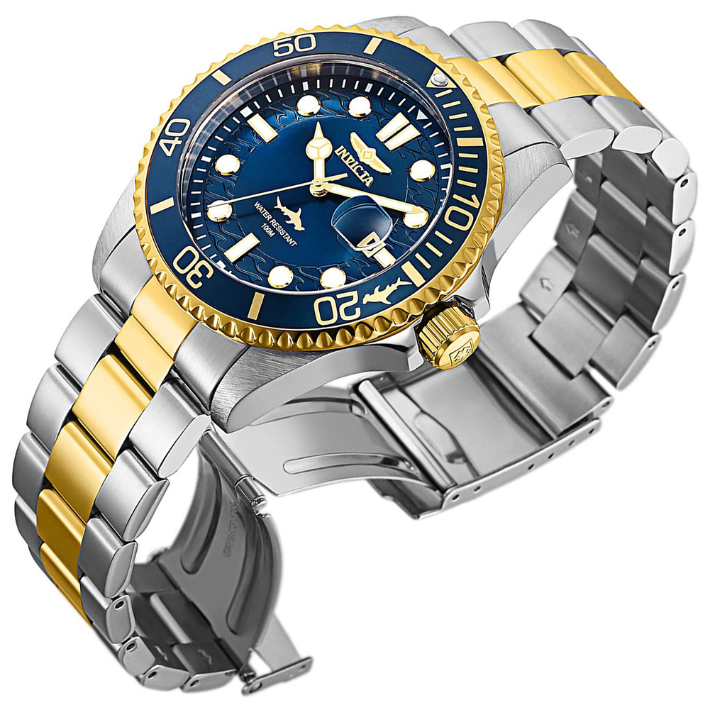 Zegarek INVICTA Pro Diver 30021 to klasyczny nurek z wodoszczelnością do 100m, z kwarcowym mechanizmem SEIKO PC32A. Na granatowej tarczy znajduje się datownik wskazujący dni miesiąca z lupą oraz fluorescencyjne wskazówki. Stalowa bransoletę zdobią elementy pokryte powłoką PVD.