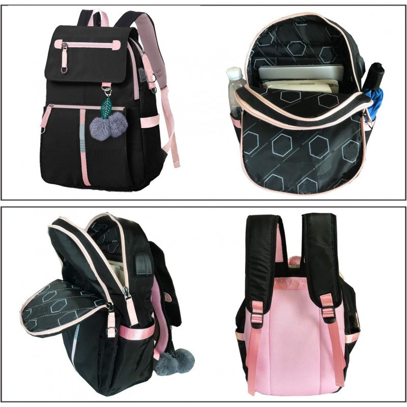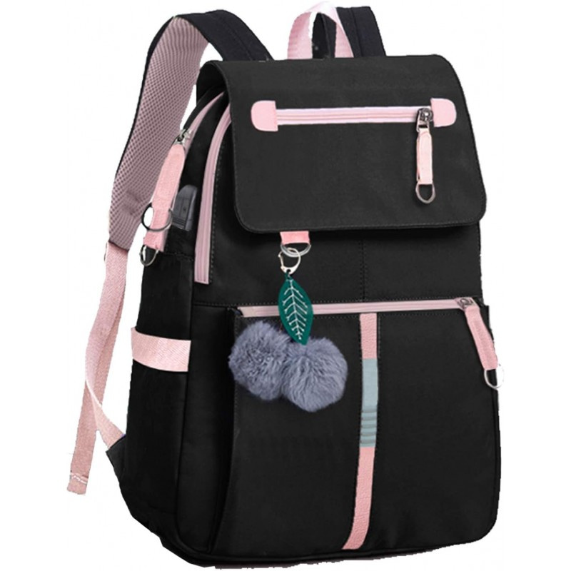 Plecak Tornister Szkolny Młodzieżowy USB - Duży Zestaw Zestaw zawiera: Plecak szkolny Kabel USB Kabel Jack Wyjście USB Brelok pomponiki ⭐ Specyfikacja ⭐ Duży