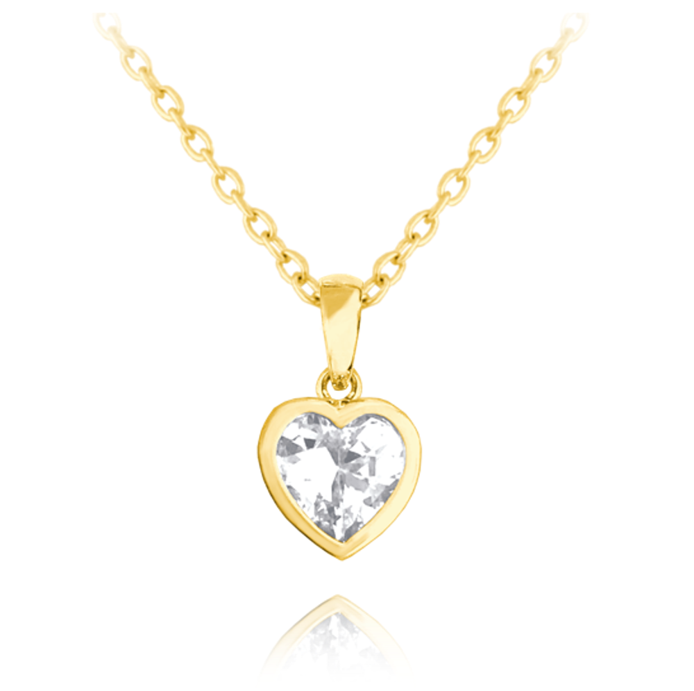 MINET Pozłacany dziecięcy srebrny naszyjnik SERCE z białą cyrkonią