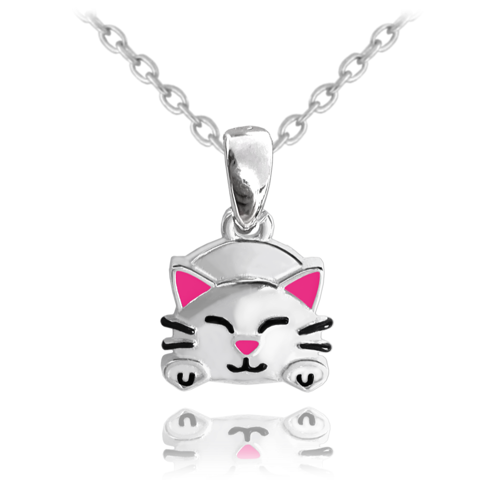 MINET X CLOCKODILE Dziecięcy srebrny naszyjnik KOT