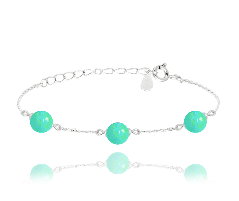 MINET Srebrna bransoletka z zielonymi opalami
