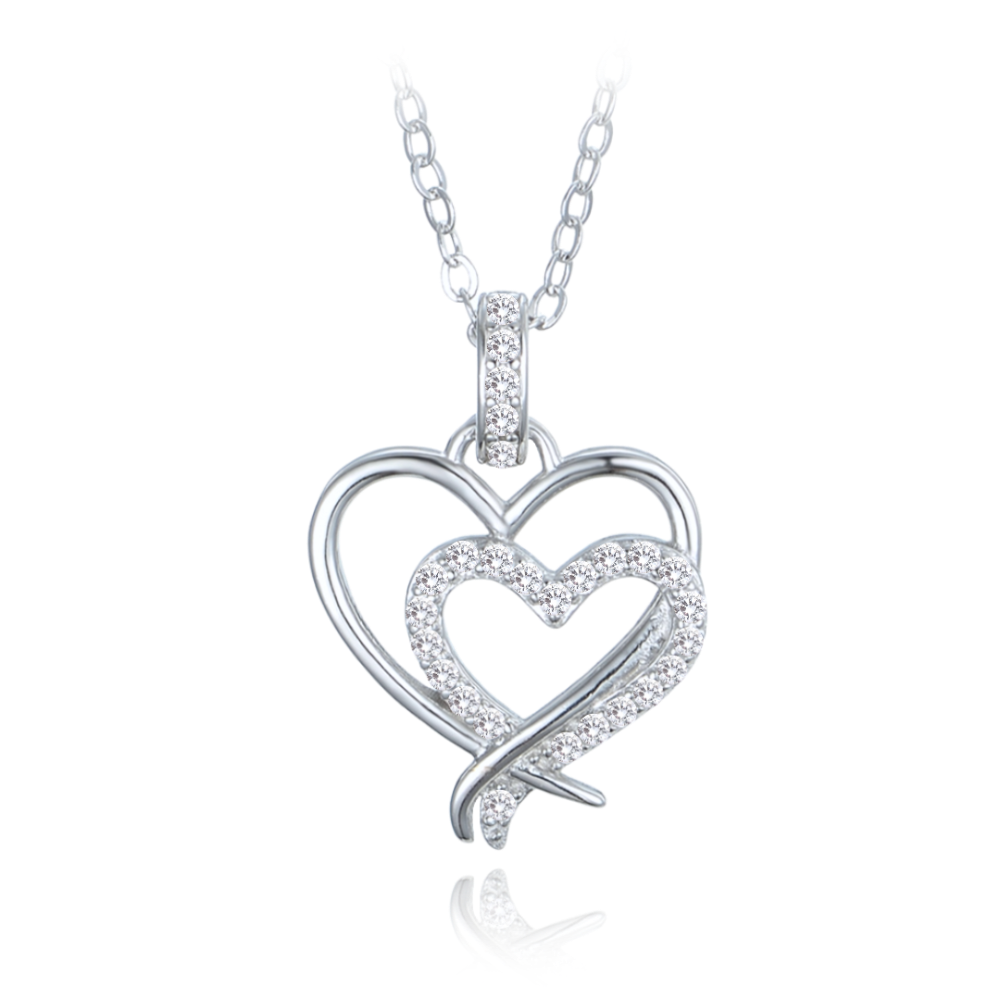 MINET Naszyjnik srebrny podwójne serce z białymi cyrkoniami