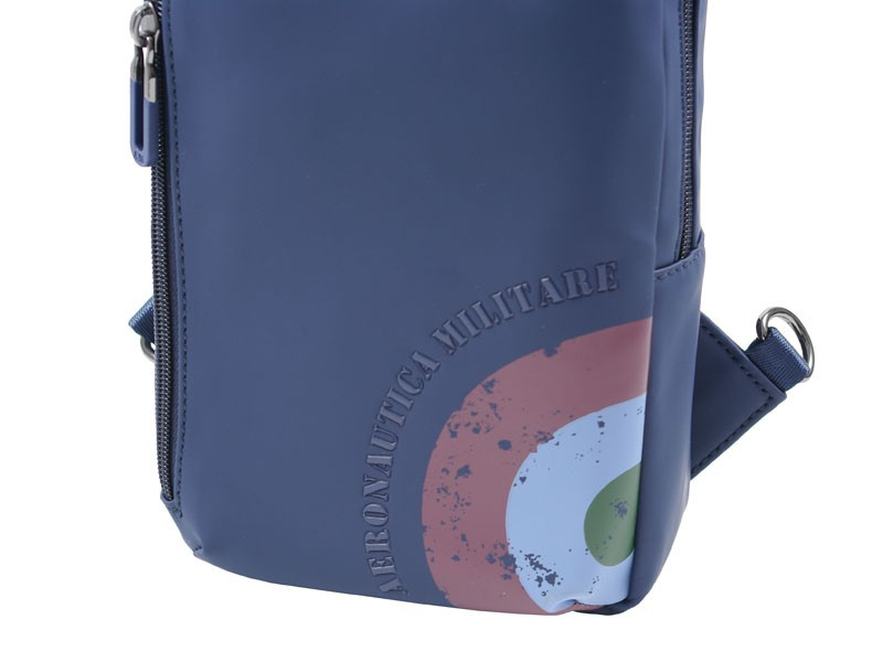 Plecak na jedno ramie - torba crossbody Aeronautica Militare z kolekcji Runway. Nowoczesny plecak typu crossbody, idealny dla osób w ruchu. Kompaktowy, lekki i wygodny – dzięki regulowanemu paskowi można nosić go na jednym ramieniu z przodu lub z tyłu. Wykonany z trwałej, gumowanej tkaniny technicznej, która skutecznie chroni zawartość przed deszczem i zabrudzeniami. Dedykowany osobom które chcą się wyróżnić w miejskiej przestrzeni, nie rezygnując z funkcjonalności. Kompaktowe wymiary i pojemność doskonale sprawdzają się jako lekki bagaż podręczny lub plecak na co dzień, oferując wygodę i mobilność. Szczegóły plecaka na jedno ramię: Regulowany pasek na ramię umożliwia wygodne noszenie zarówno na prawym, jak i lewym ramieniu, z przodu lub z tyłu, zapewniając komfort w ruchu i pełną swobodę. Zewnętrzna, boczna kieszeń z suwakiem zapewnia szybki dostęp do telefonu czy portfela. Przednia kieszeń na najpotrzebniejsze drobiazgi. Dedykowane przegrody i kieszonki utrzymują porządek w plecaku, ułatwiając przechowywanie dokumentów, ładowarki i innych akcesoriów. Miękko wyściełana tylna ścianka odciąża plecy podczas noszenia, minimalizując zmęczenie nawet przy dłuższym użytkowaniu. Na górnej części znajduje się dyskretne logo marki metalowe logo Aeronautica Militare, a dolna część ozdobiona jest wyrazistą grafiką z motywem włoskiej trójkolorowej flagi i napisem Aeronautica Militare , które podkreślają jej ekskluzywny wygląd.Bezpieczeństwo - rodzaj ostrzeżenia
