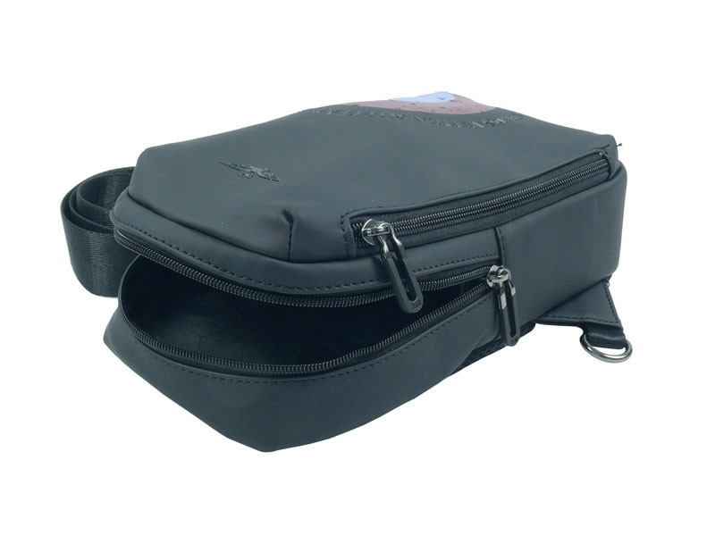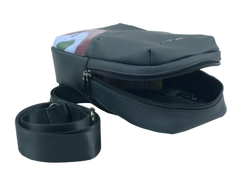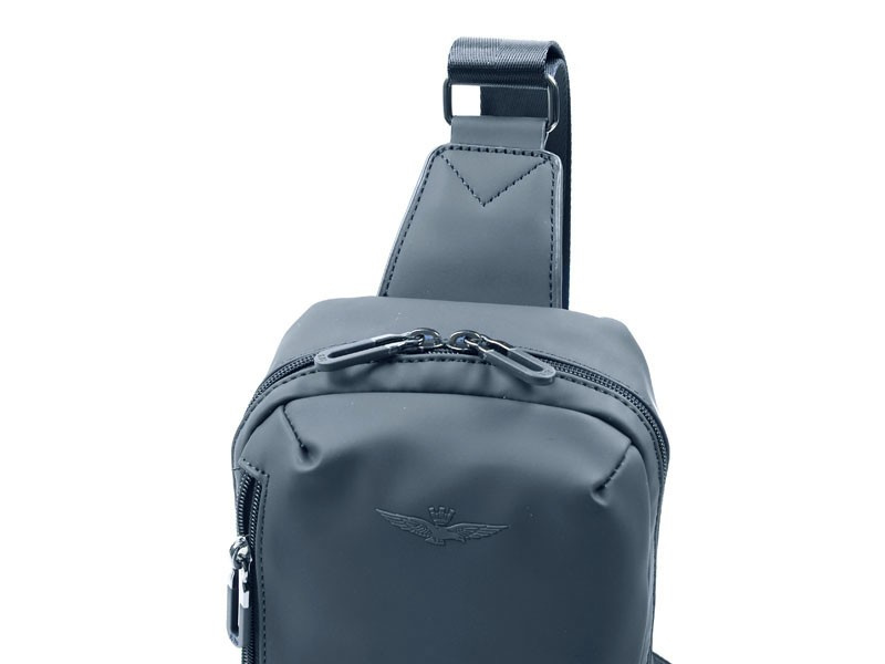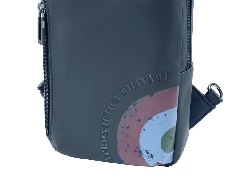 Plecak na jedno ramie - torba crossbody Aeronautica Militare z kolekcji Runway. Nowoczesny plecak typu crossbody, idealny dla osób w ruchu. Kompaktowy, lekki i wygodny – dzięki regulowanemu paskowi można nosić go na jednym ramieniu z przodu lub z tyłu. Wykonany z trwałej, gumowanej tkaniny technicznej, która skutecznie chroni zawartość przed deszczem i zabrudzeniami. Dedykowany osobom które chcą się wyróżnić w miejskiej przestrzeni, nie rezygnując z funkcjonalności. Kompaktowe wymiary i pojemność doskonale sprawdzają się jako lekki bagaż podręczny lub plecak na co dzień, oferując wygodę i mobilność. Szczegóły plecaka na jedno ramię: Regulowany pasek na ramię umożliwia wygodne noszenie zarówno na prawym, jak i lewym ramieniu, z przodu lub z tyłu, zapewniając komfort w ruchu i pełną swobodę. Zewnętrzna, boczna kieszeń z suwakiem zapewnia szybki dostęp do telefonu czy portfela. Przednia kieszeń na najpotrzebniejsze drobiazgi. Dedykowane przegrody i kieszonki utrzymują porządek w plecaku, ułatwiając przechowywanie dokumentów, ładowarki i innych akcesoriów. Miękko wyściełana tylna ścianka odciąża plecy podczas noszenia, minimalizując zmęczenie nawet przy dłuższym użytkowaniu. Na górnej części znajduje się dyskretne logo marki metalowe logo Aeronautica Militare, a dolna część ozdobiona jest wyrazistą grafiką z motywem włoskiej trójkolorowej flagi i napisem Aeronautica Militare , które podkreślają jej ekskluzywny wygląd.Bezpieczeństwo - rodzaj ostrzeżenia