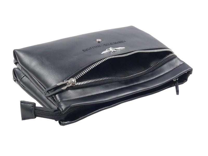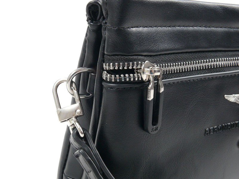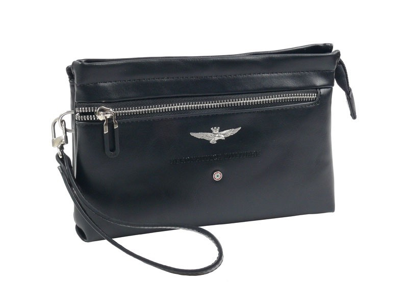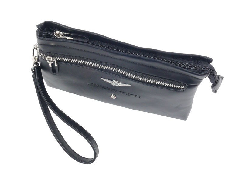 Saszetka męska - kosmetyczka Aeronautica Militare z kolekcji Performance. Kompaktowa saszetka z paskiem na nadgarstek to idealny wybór na codzienne wyjścia i podróże.Sprawdzi się zarówno w codziennych, jak i bardziej formalnych zestawieniach. Wykonana z wysokiej jakości skóry ekologicznej, odpornej na przetarcia i zachlapania. Posiada wewnętrzny organizer i kieszeń zapinaną na suwak, co pozwala zachować porządek i łatwy dostęp do najważniejszych rzeczy. Saszetka posiada dwie praktyczne komory – oddzielne przegrody pozwalają łatwo posegregować wszystkie niezbędne drobiazi. Metalowe zamki błyskawiczne gwarantują bezpieczeństwo przechowywanych przedmiotów. Odpinany pasek na nadgarstek służy do noszenia w ręce lub zawieszenia na przegubie dłoni zapewniając maksymalny komfort i pełną swobodę ruchu. Dodatkową opcją przenoszenia saszetki jest tylny uchwyt do trzymania w dłoni. Metalowe detale z charakterystycznym logo oraz wytłoczony napis Aeronautica Militare stanowią stylowy akcent przyciągający uwagę. Zaprojektowana w praktyczny i funkcjonalny sposób cechuję się niewielką wagą i starannym wykończeniem.Bezpieczeństwo - rodzaj ostrzeżenia