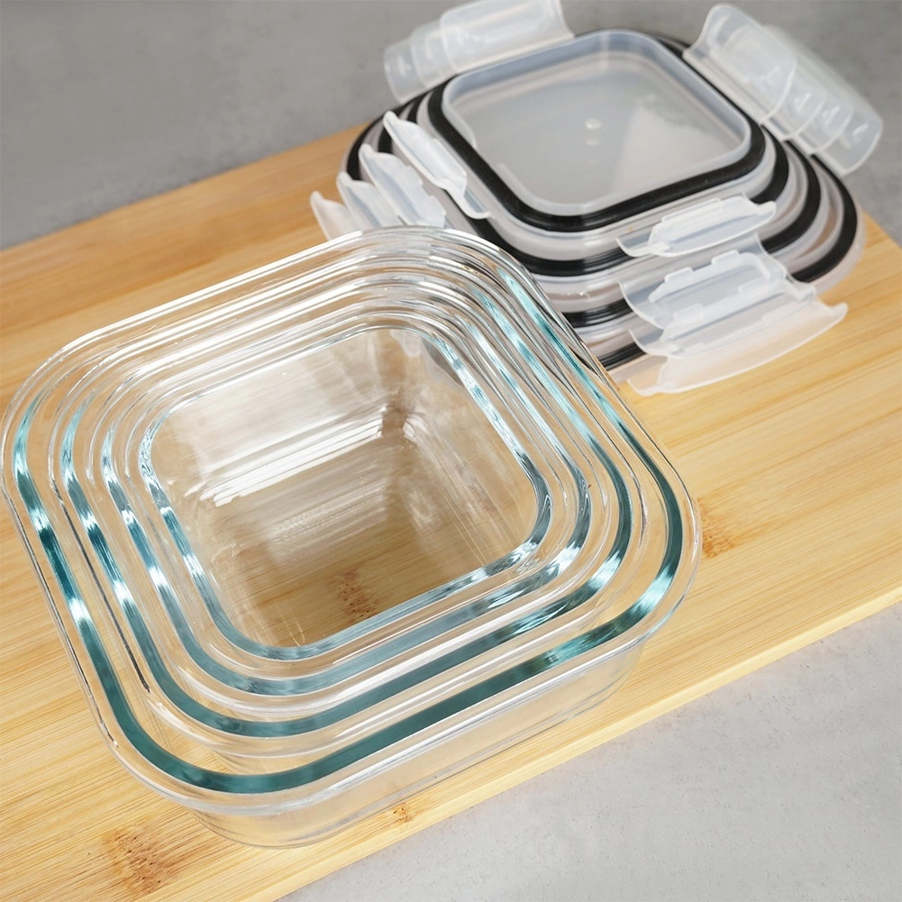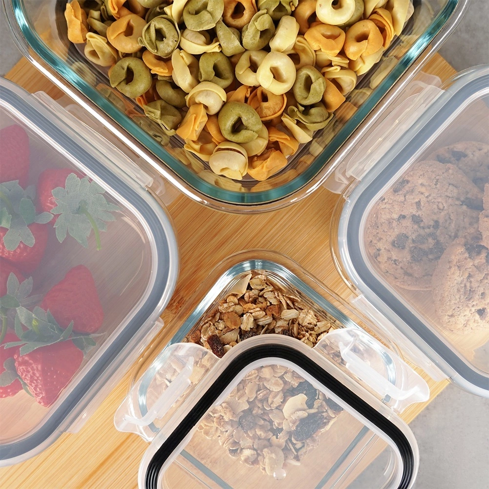 Pojemniki na żywność szklane z pokrywką i uszczelką kwadratowe 4 szt.