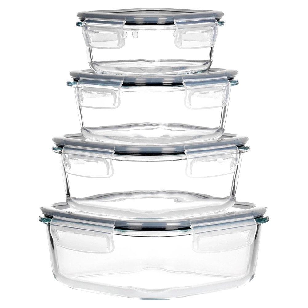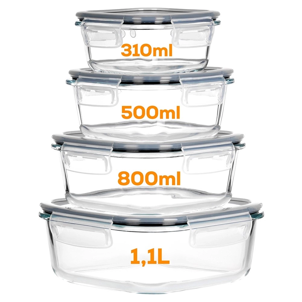 - Zestaw 4 pojemników kuchennych w różnych rozmiarach. Idealne do przechowywania żywności oraz produktów sypkich. Wykonane ze szkła, pokrywka jest szczelna dzięki uszczelce.