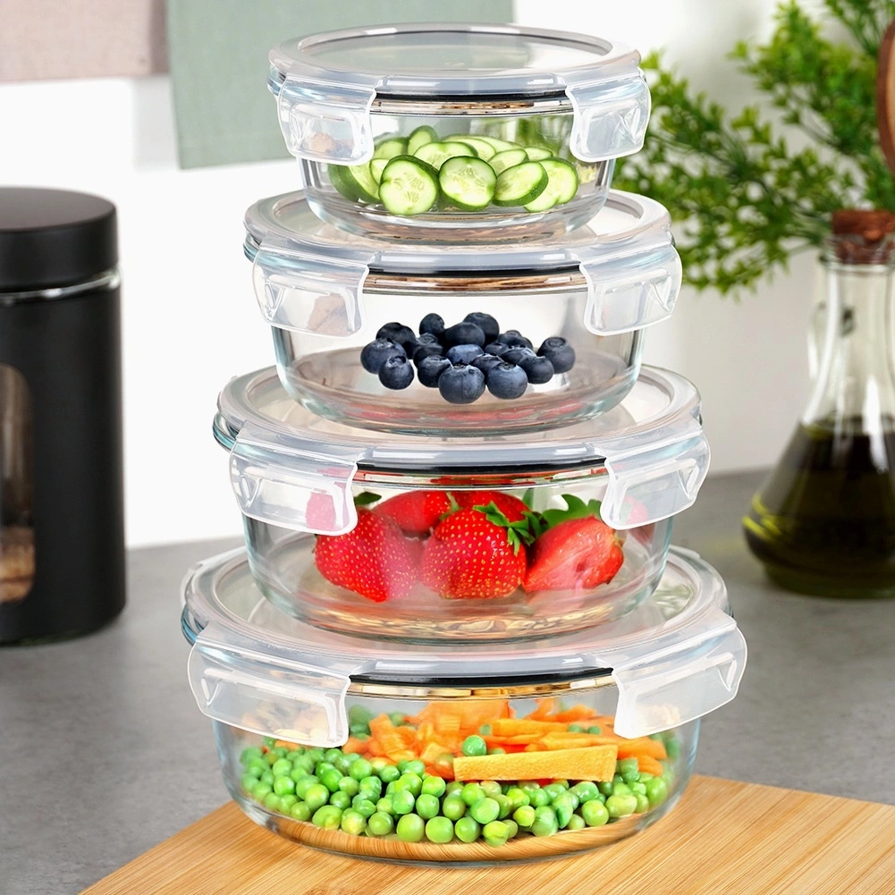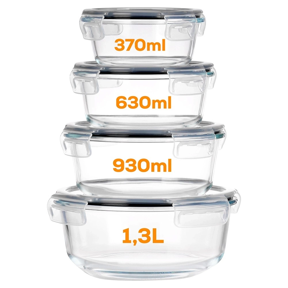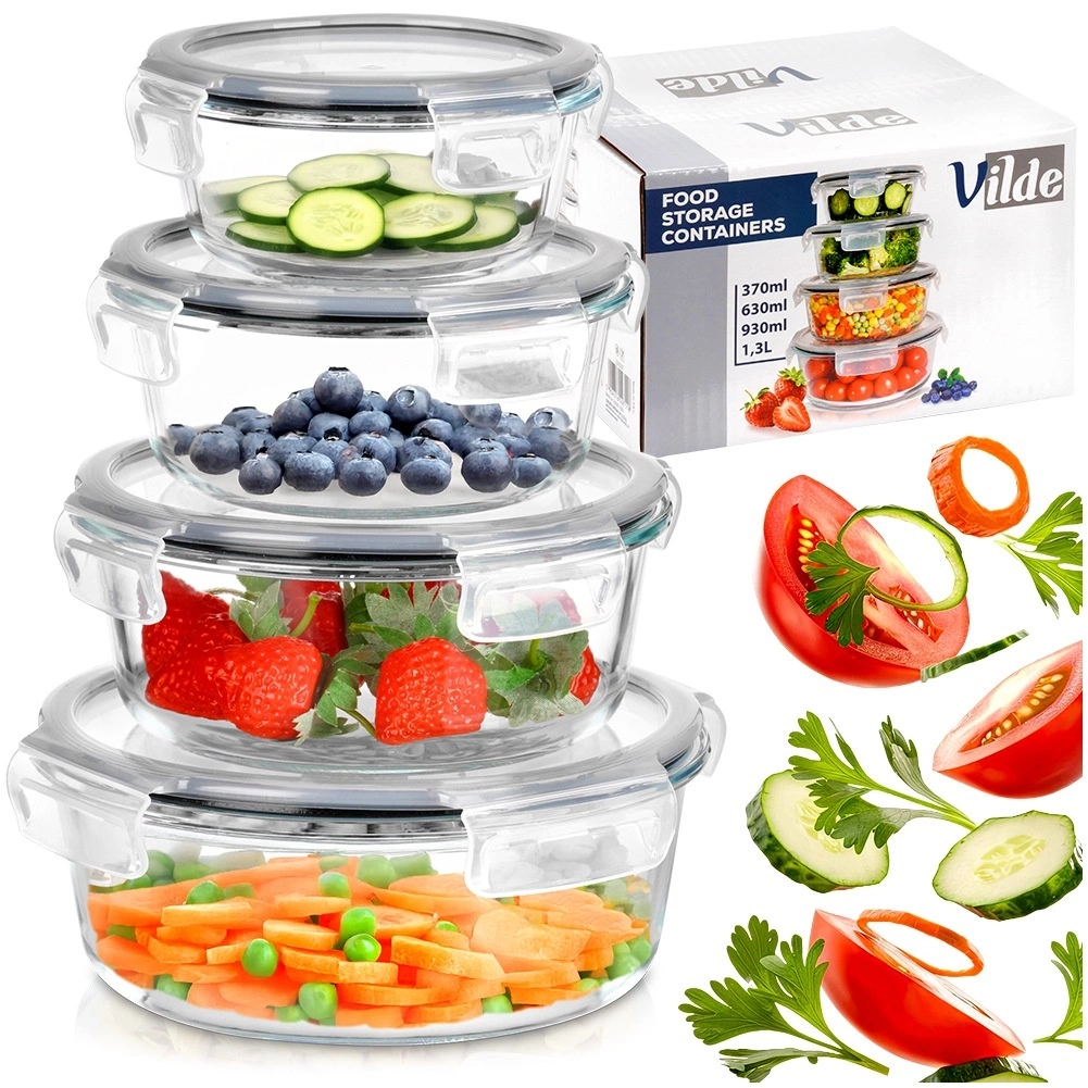 Pojemniki na żywność szklane z pokrywką i uszczelką okrągłe 4 szt.