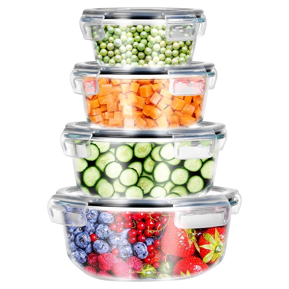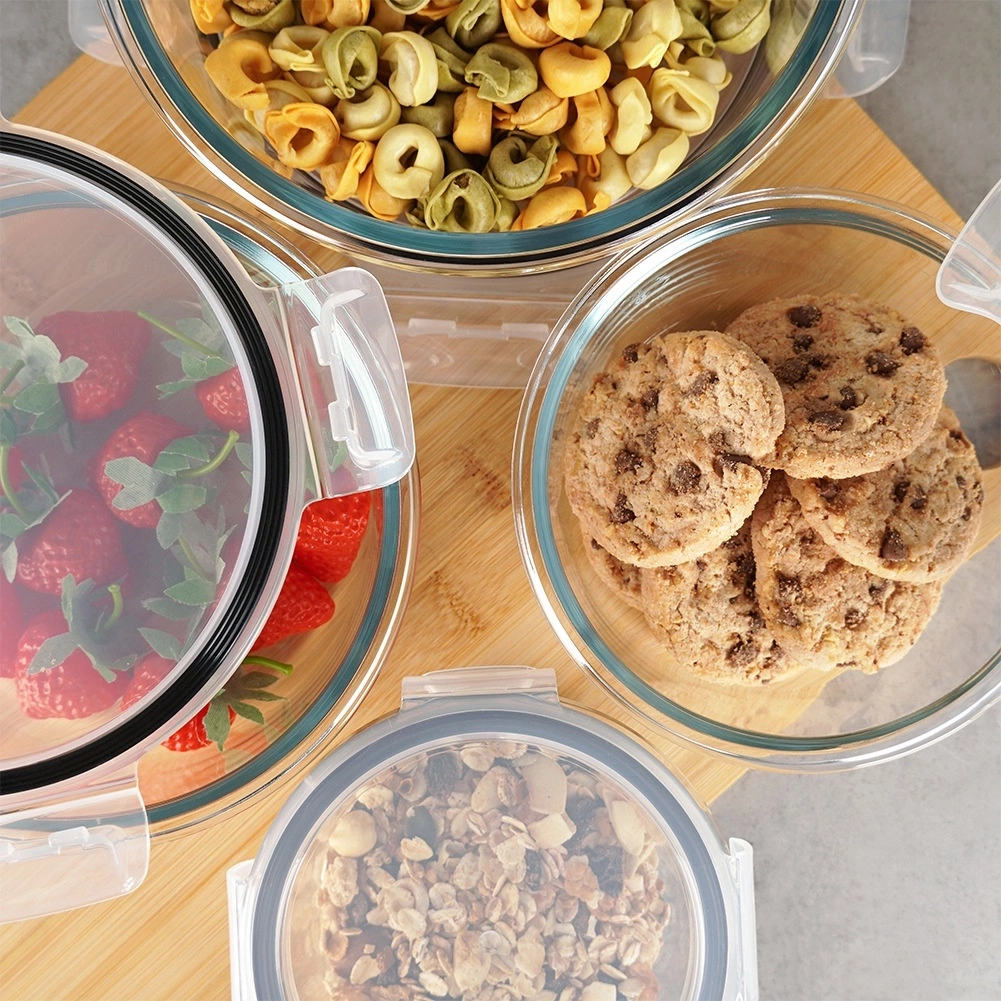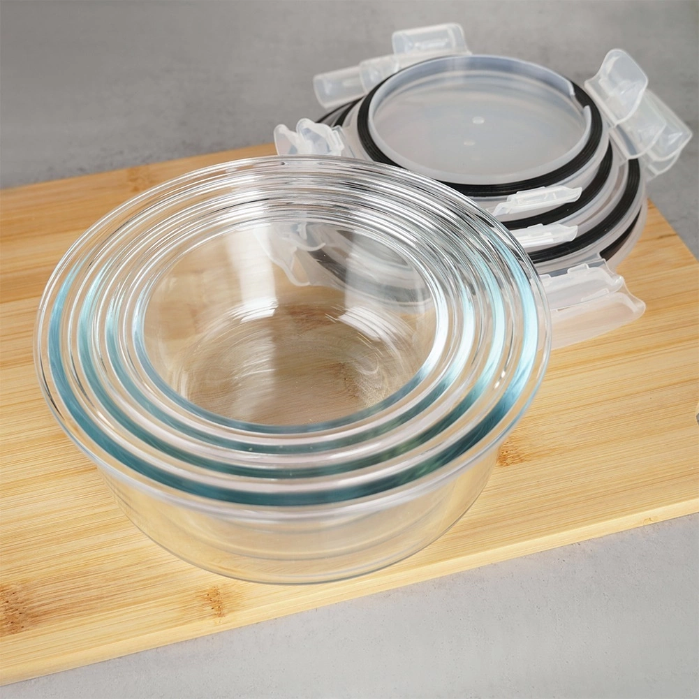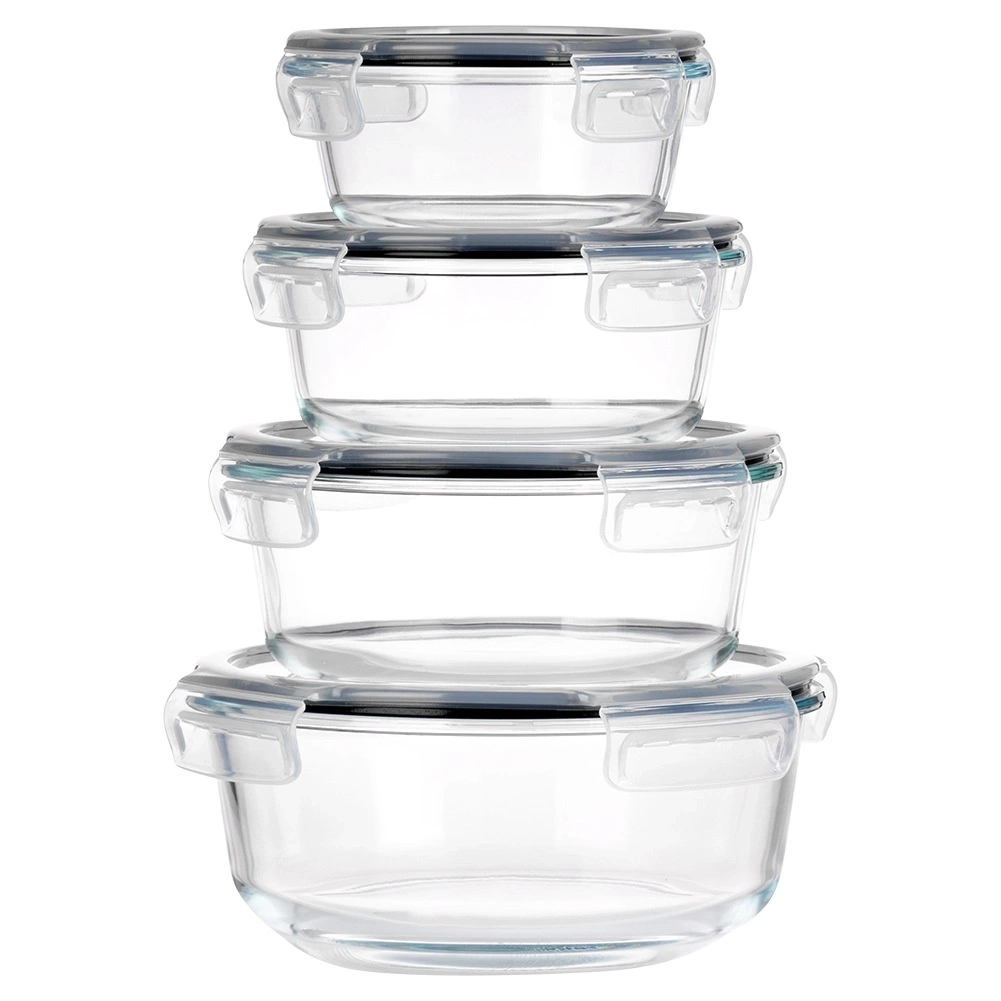Pojemniki na żywność szklane z pokrywką i uszczelką okrągłe 4 szt.