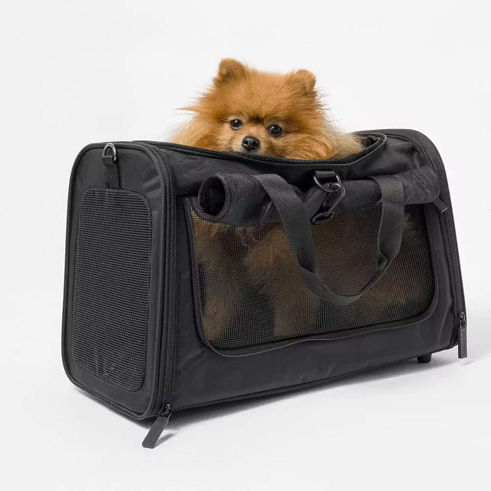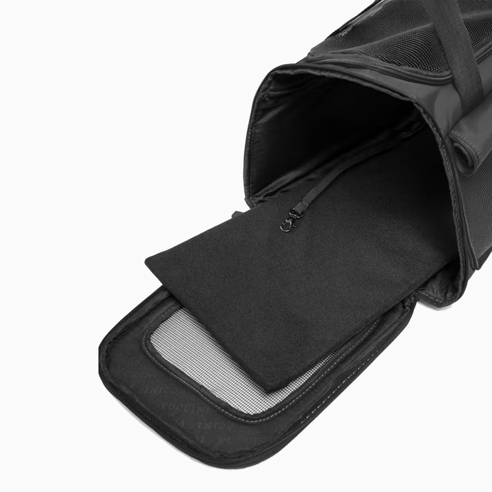 - wewnątrz pasek z karabińczykiem do przypięcia obroży lub szelek
