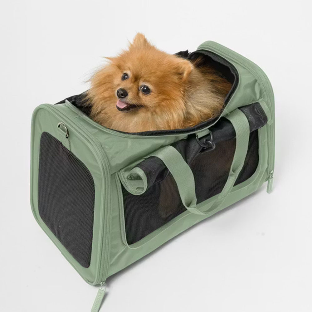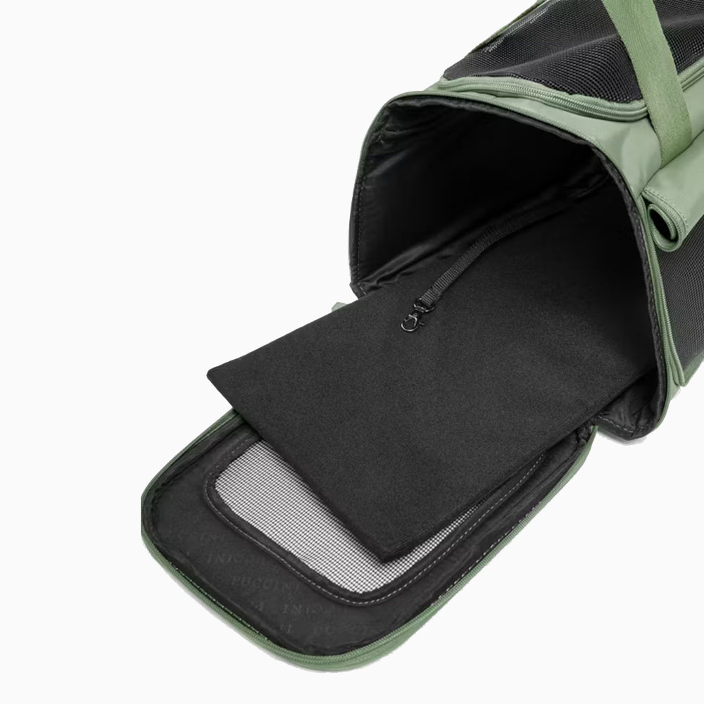 - wewnątrz pasek z karabińczykiem do przypięcia obroży lub szelek