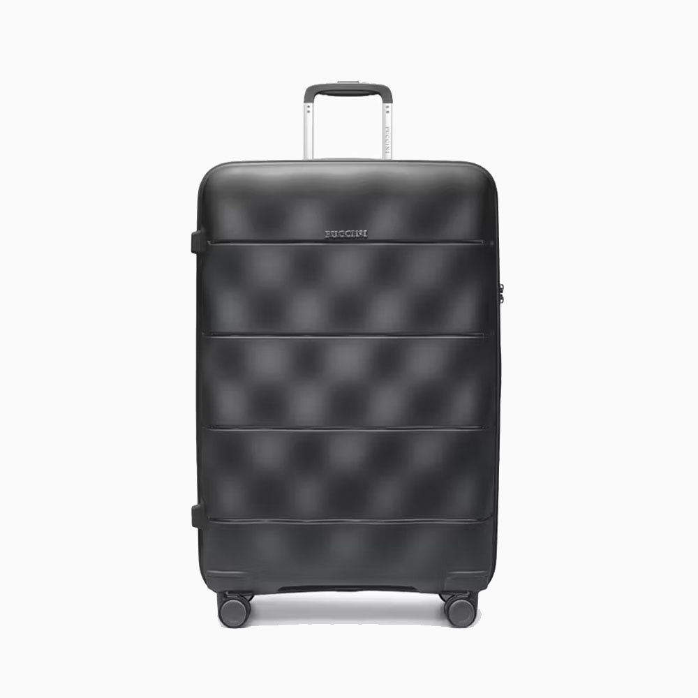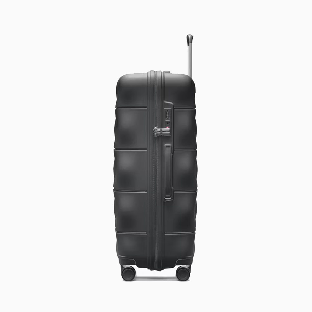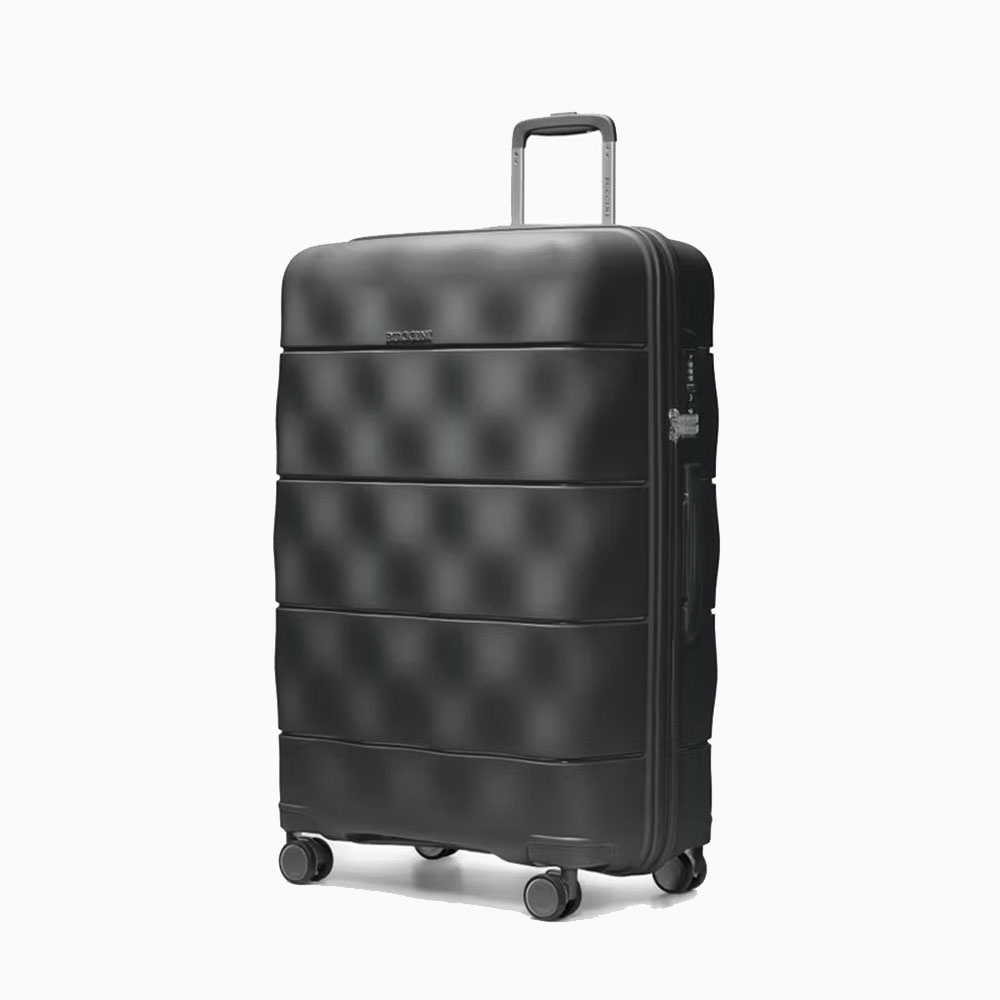 - walizka twarda wykonana z polipropylenu, materiału charakteryzującego się super lekką wagą i niezwykłą wytrzymałością