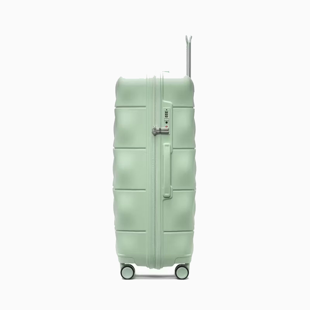 - walizka twarda wykonana z polipropylenu, materiału charakteryzującego się super lekką wagą i niezwykłą wytrzymałością