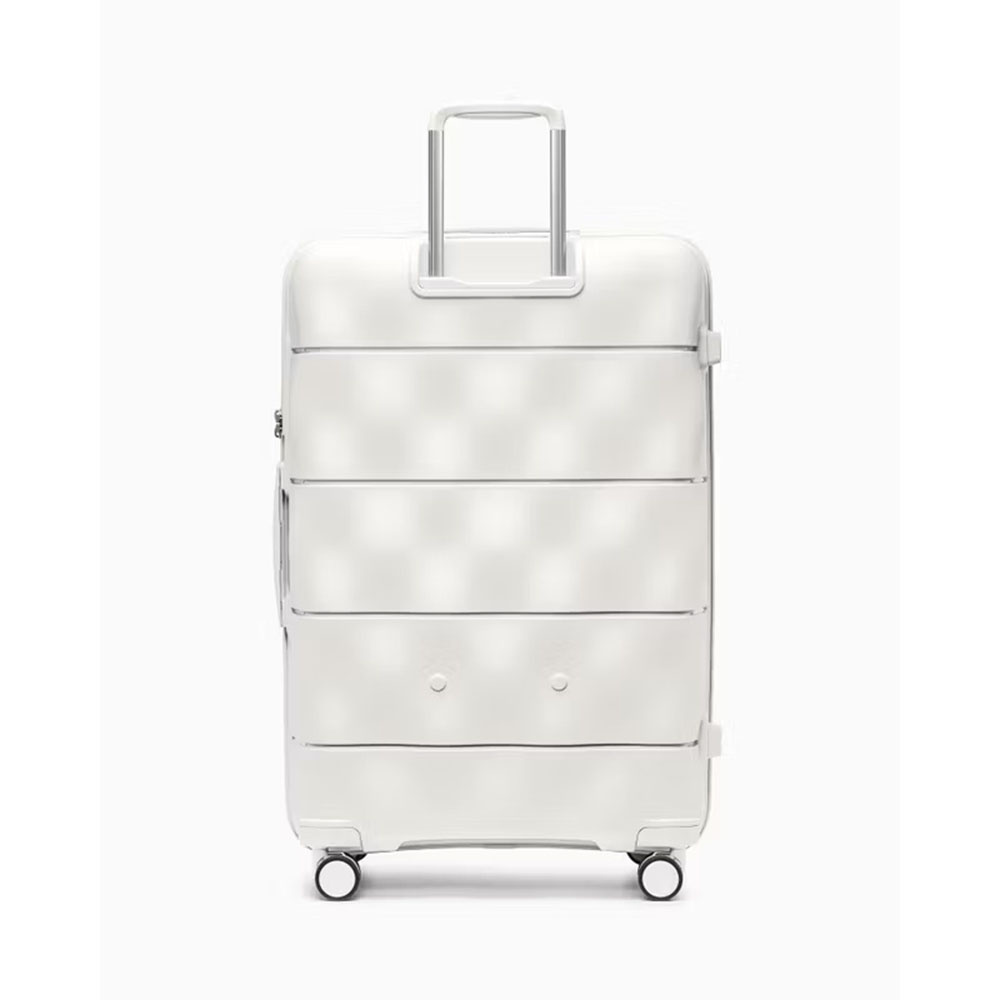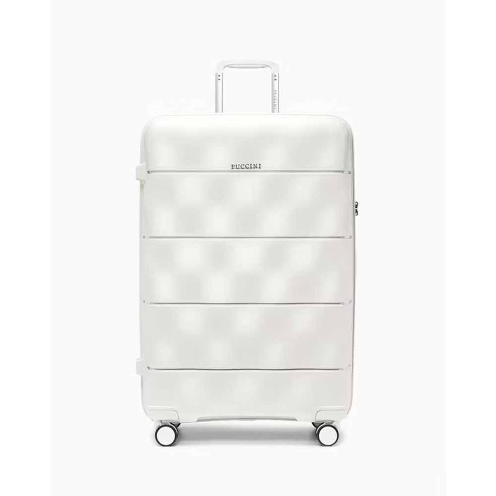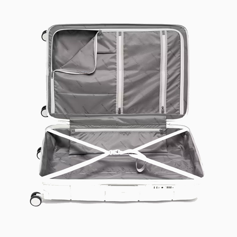 - walizka twarda wykonana z polipropylenu, materiału charakteryzującego się super lekką wagą i niezwykłą wytrzymałością