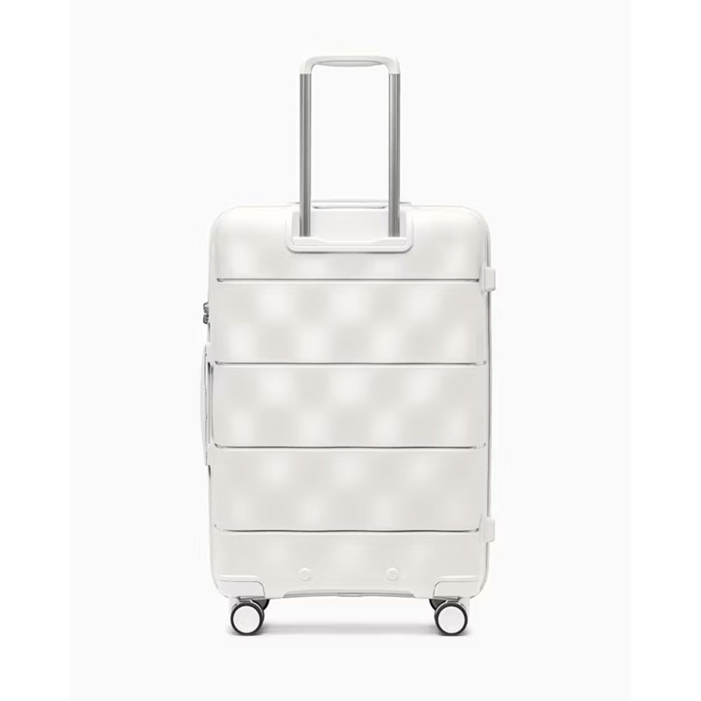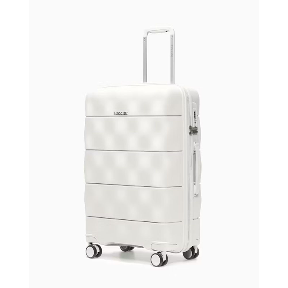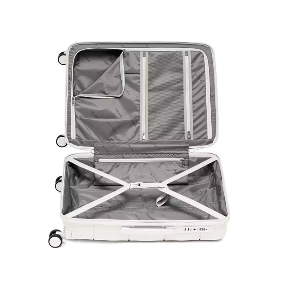 - walizka twarda wykonana z polipropylenu, materiału charakteryzującego się super lekką wagą i niezwykłą wytrzymałością