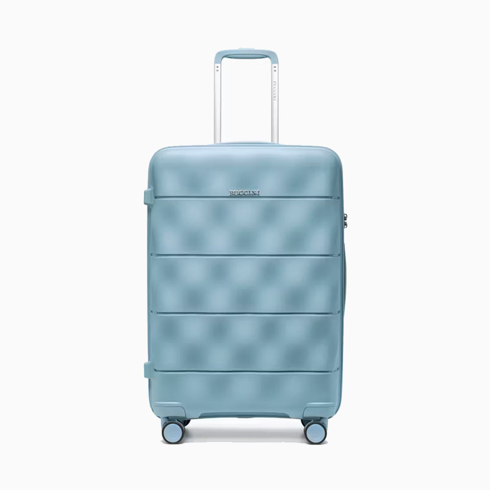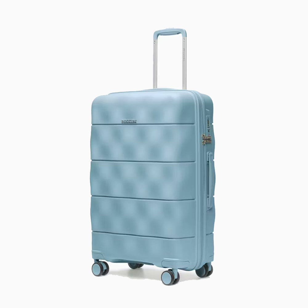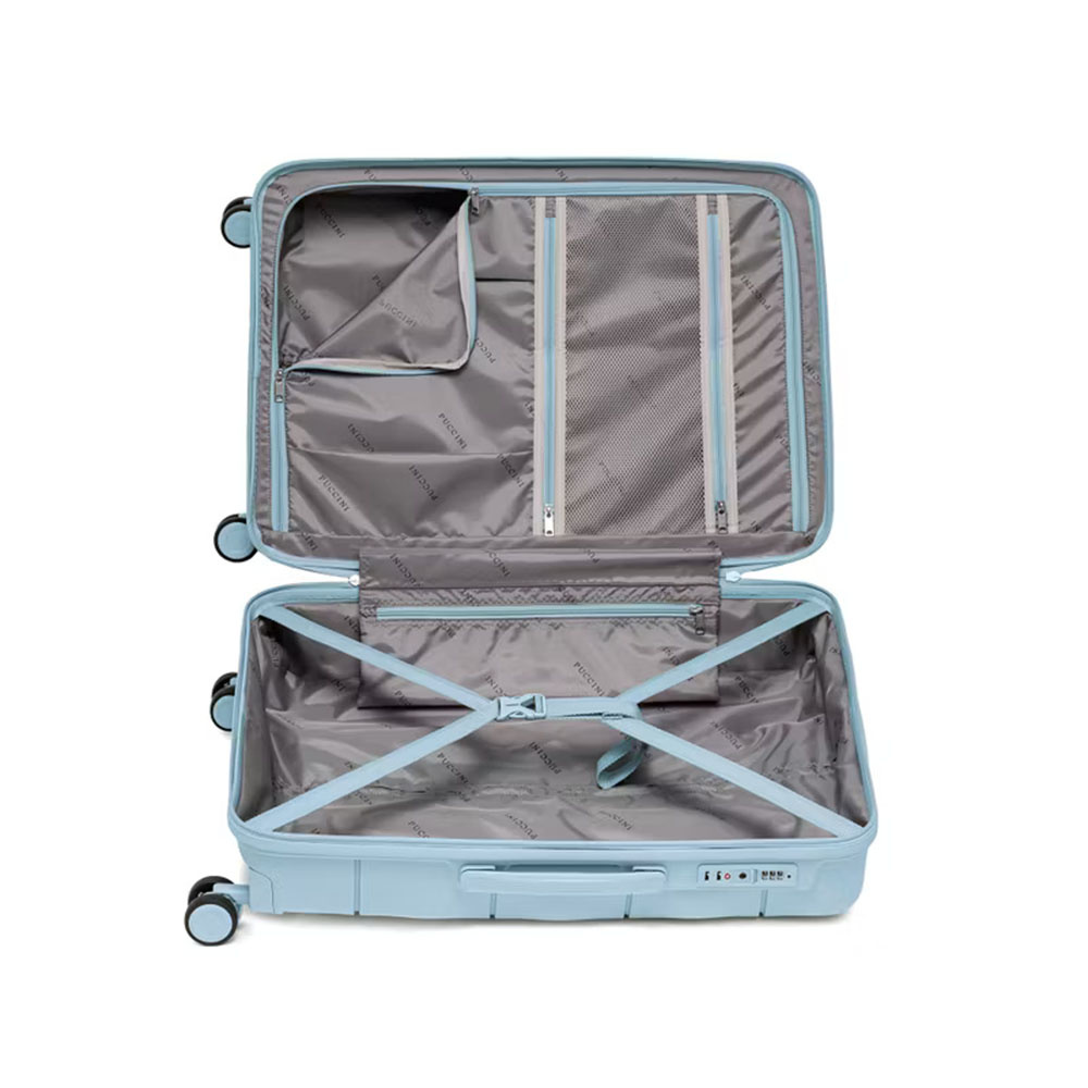 - walizka twarda wykonana z polipropylenu, materiału charakteryzującego się super lekką wagą i niezwykłą wytrzymałością