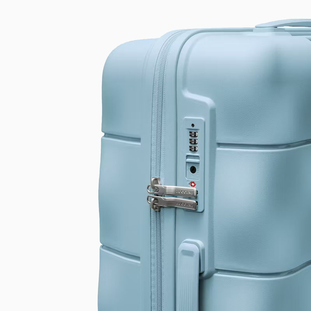 - dodatkowo wyposażona w wbudowany do wnętrza walizki zamek szyfrowy TSA (Travel Security Agency, bardzo przydatny w podróżach do USA)