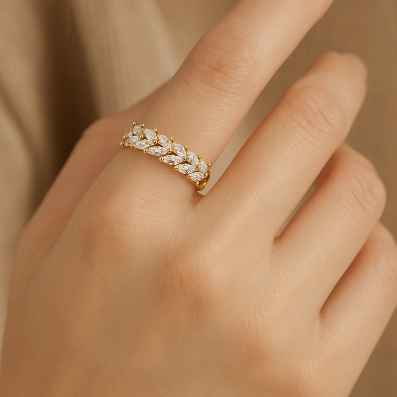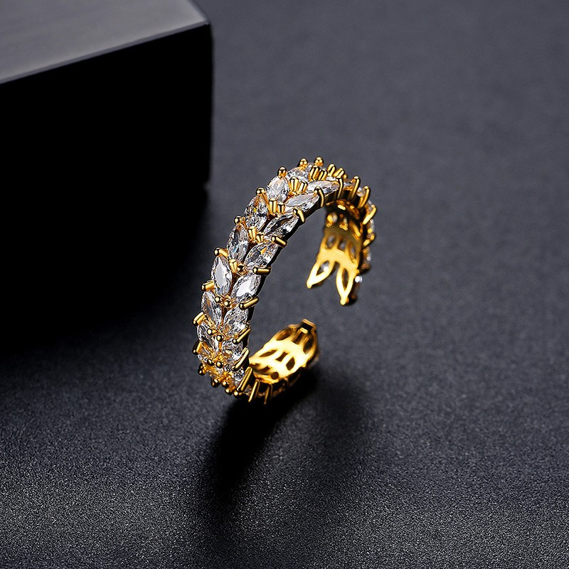 Nowa kolekcja biżuterii ze stali szlachetnej Pierścionek platerowany 14-karatowym złotem Rozmiar: regulowany Szerokość: 1,8cm Waga: 2g netto / 3g