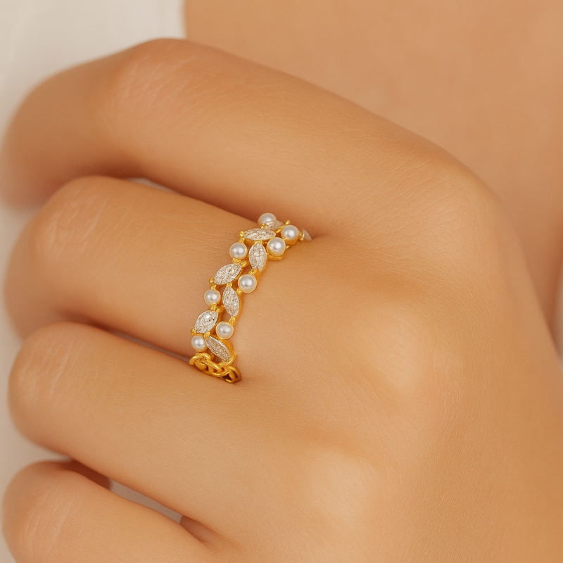 Nowa kolekcja biżuterii ze stali szlachetnej Pierścionek platerowany 14-karatowym złotem Rozmiar: regulowany Szerokość: 2cm Waga: 2g netto / 5g brutto