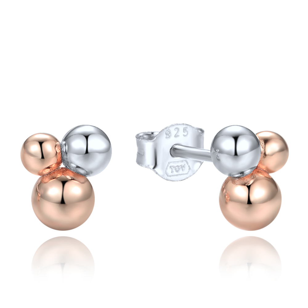 MINET Eleganckie srebrne kolczyki srebrne i Rosegold kulki