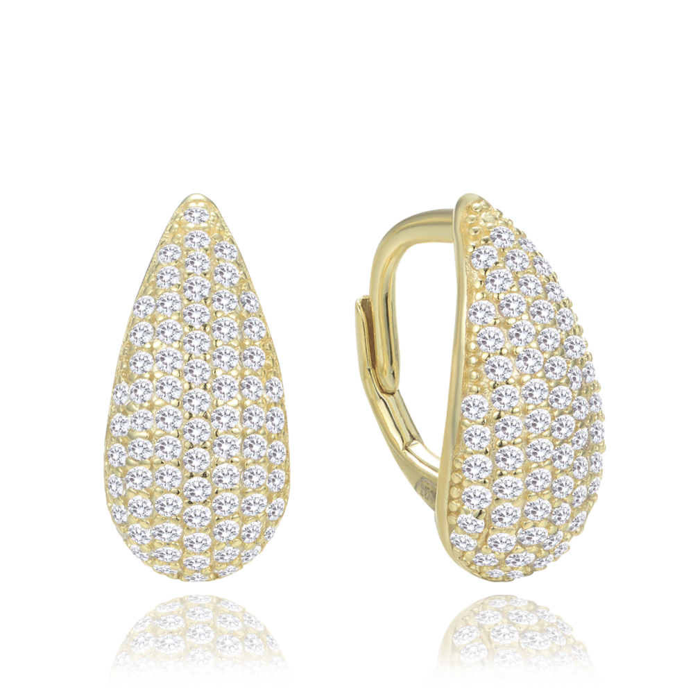 MINET Pozłacane kolczyki srebrne krople z białymi cyrkoniami