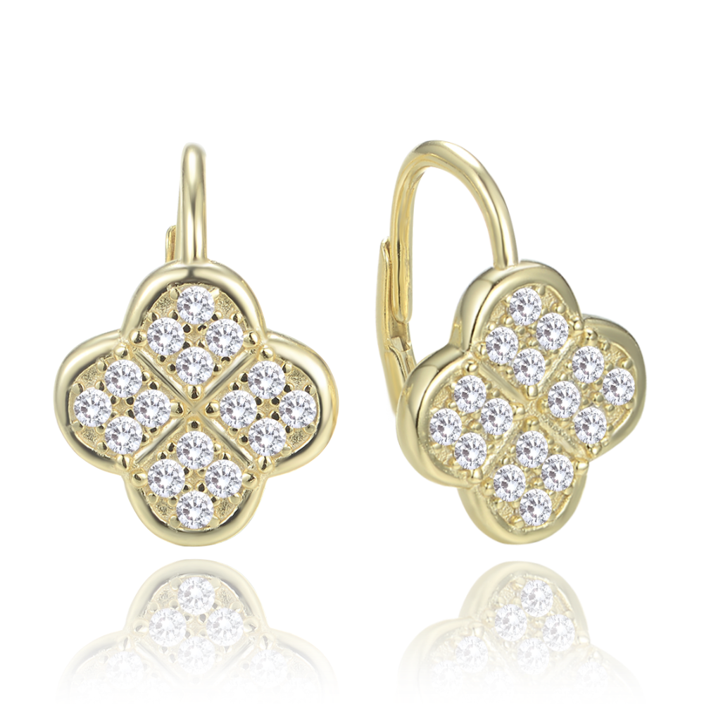 MINET Pozłacane srebrne kolczyki koniczyna z białymi cyrkoniami