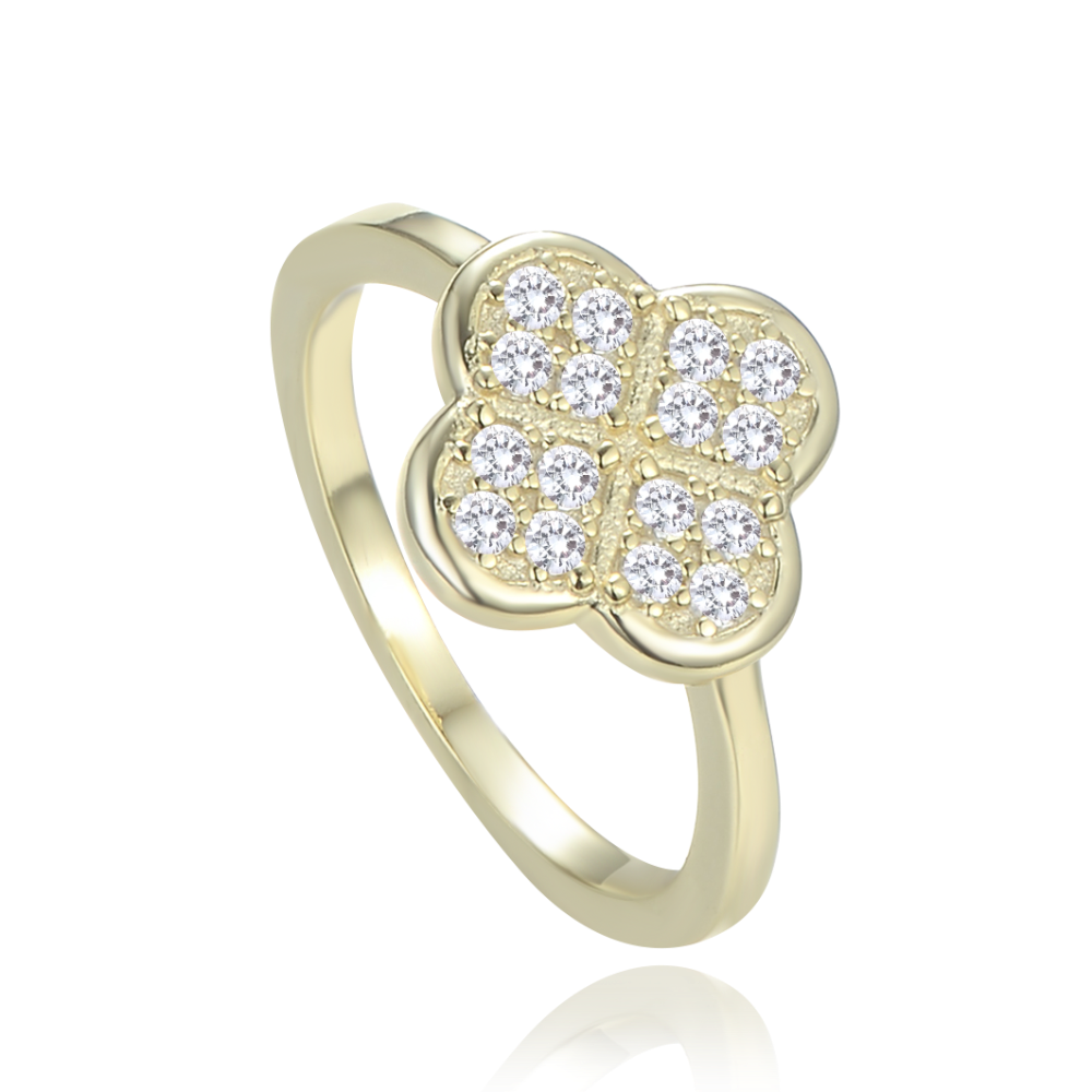 MINET Pozłacany pierścien srebrny koniczyna z białą masą perłową wielkość 14