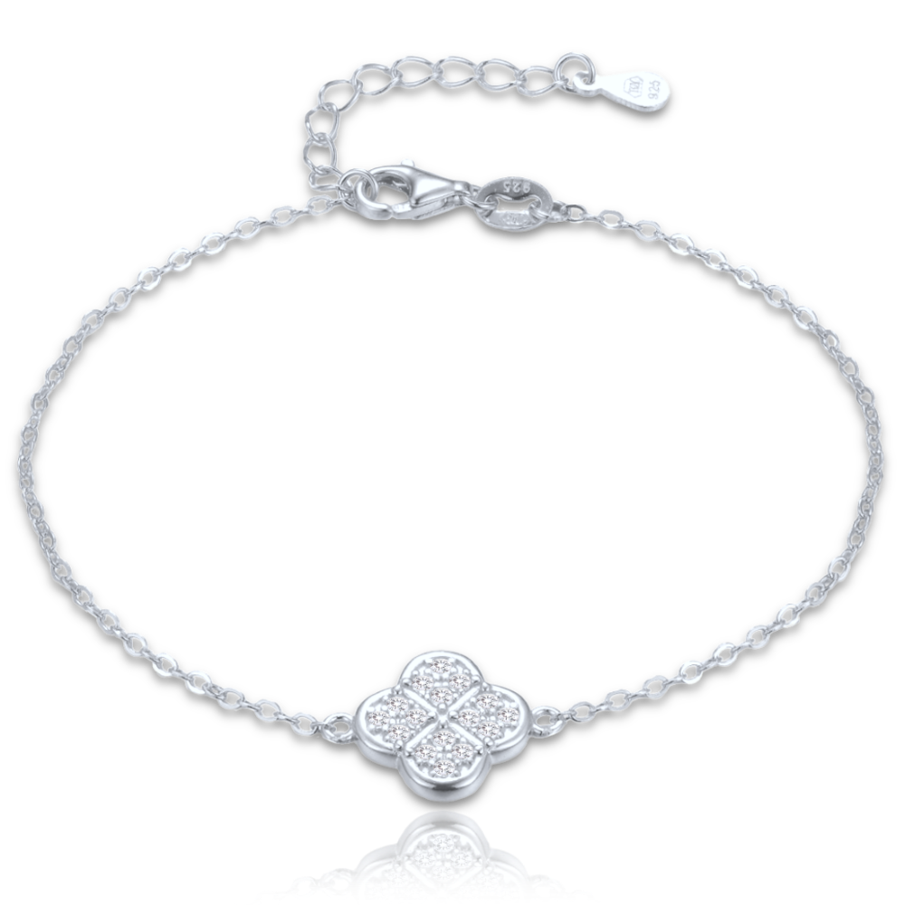 MINET Srebrna bransoletka koniczynka z białymi cyrkoniami