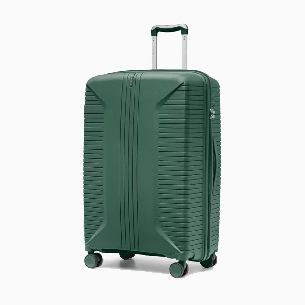 - walizka twarda wykonana z polipropylenu, materiału charakteryzującego się super lekką wagą i niezwykłą wytrzymałością