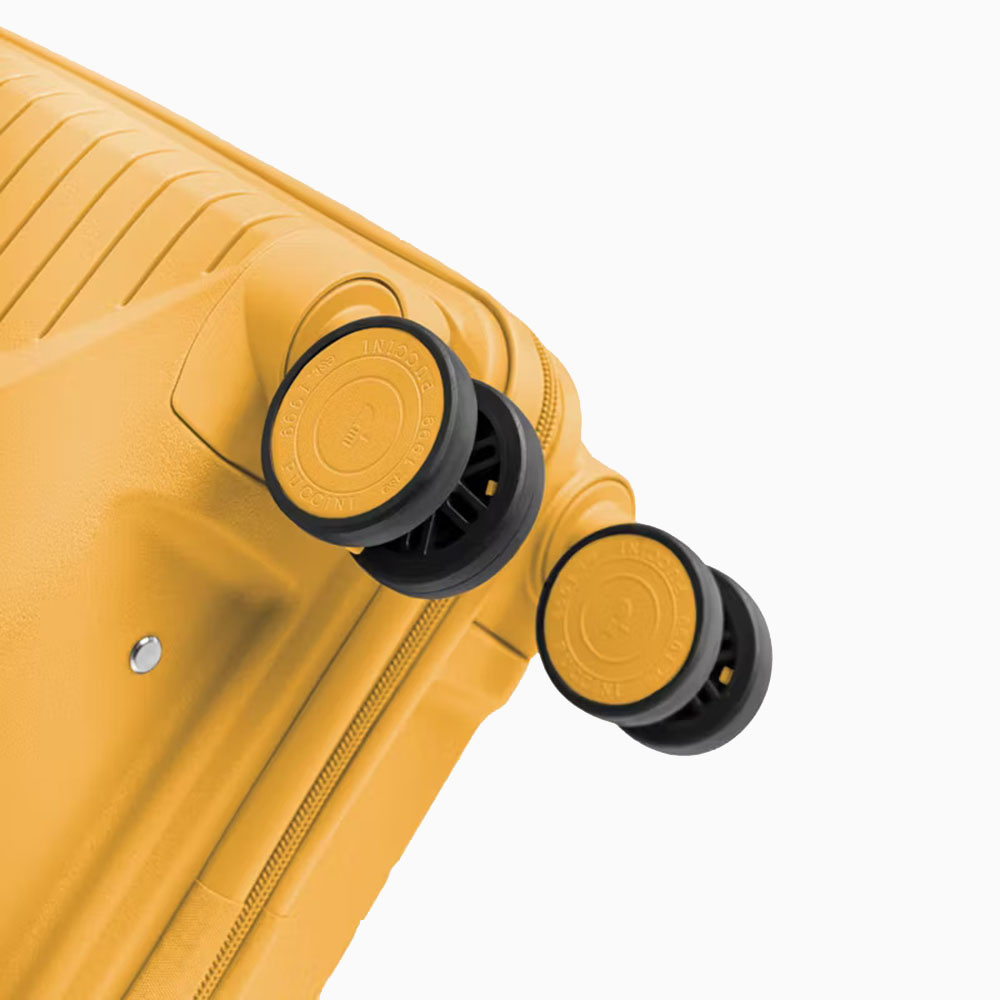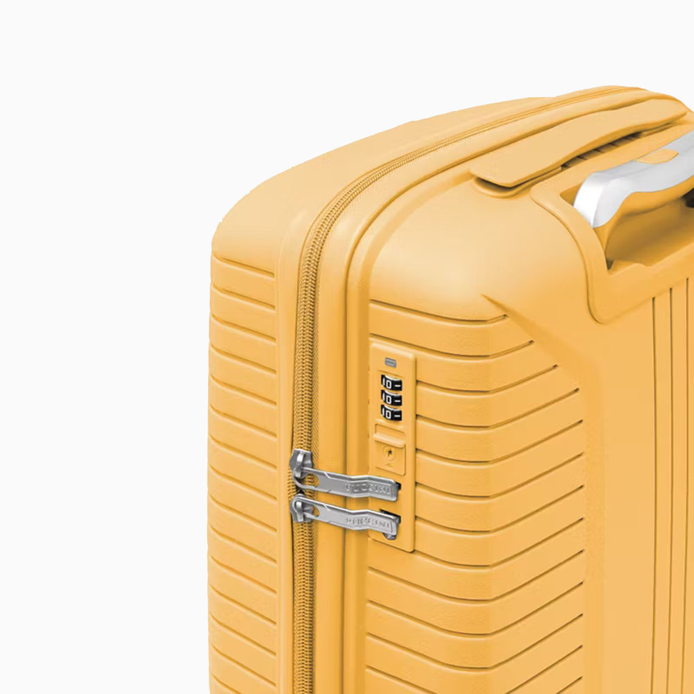 - walizka twarda wykonana z polipropylenu, materiału charakteryzującego się super lekką wagą i niezwykłą wytrzymałością